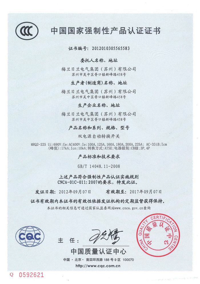 MRQ2-225雙電源資質(zhì)證書