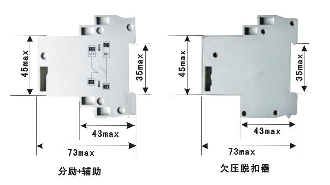 注:分勵+輔助、欠壓脫扣器安裝尺寸相同,報警觸頭與輔助觸頭安裝尺寸相同