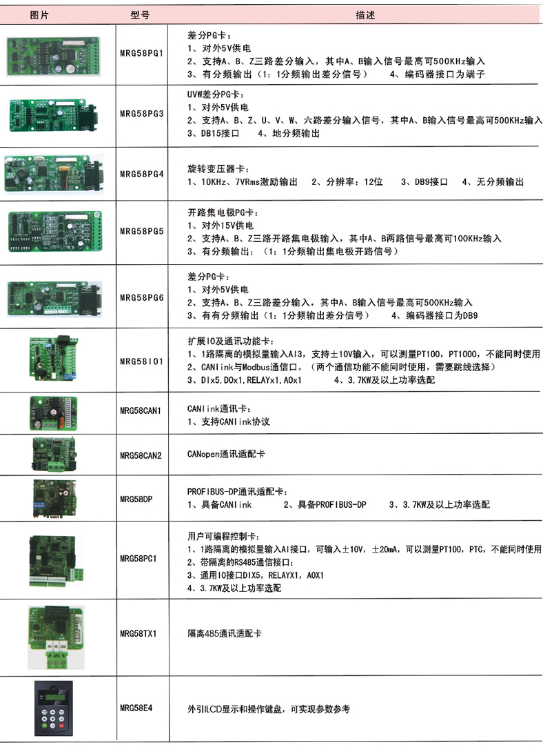 MRG580高性能矢量變頻器是基于MRG280研發(fā)的升級型變頻器,更具有針對性,MRG580在MRG280的基礎上除軟件升級外還添加了多種PG卡,端子功能擴展卡,以及通訊卡等選配件。不同的選配件使MRG580有應用領域更加廣泛。在行業(yè)應用領域中更加專業(yè)。(MRG580配上專用選配件可適用于:紡織、造紙、拉絲機、機床、包裝、食品、空壓機、化工、礦山、鋼鐵、風機、水泵及各種自動化生產(chǎn)設備的驅(qū)動)。
